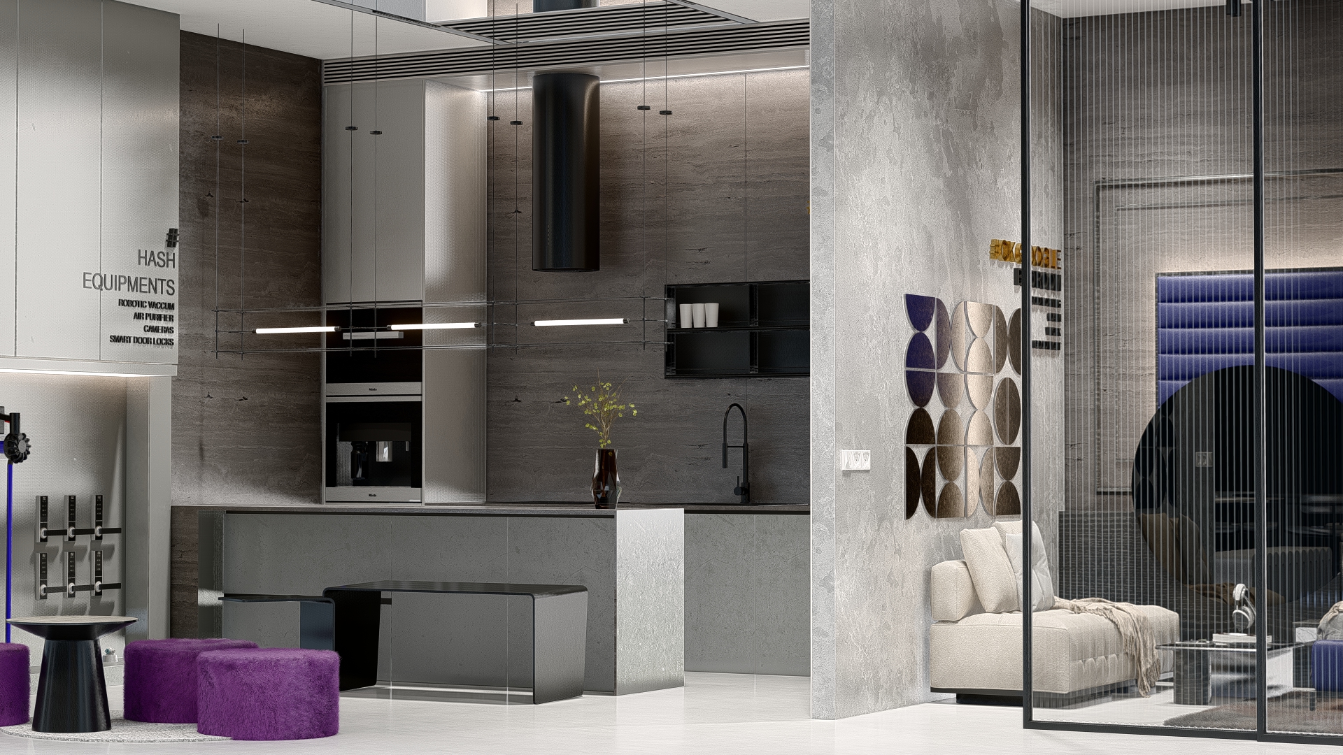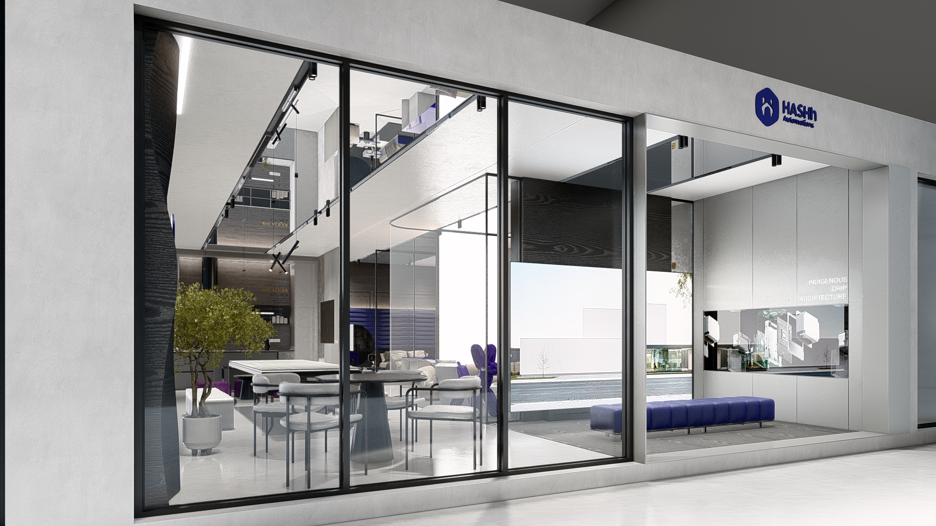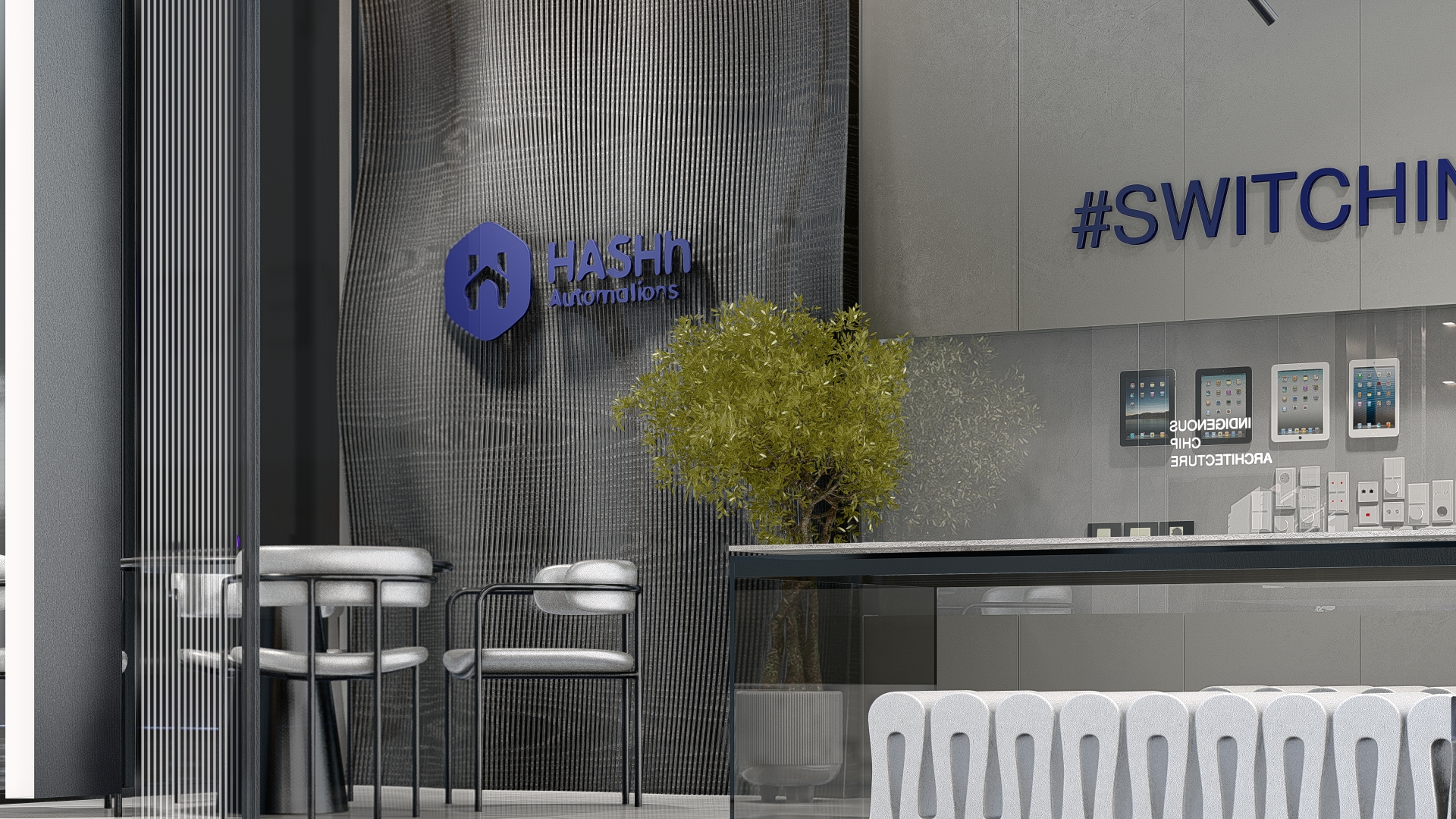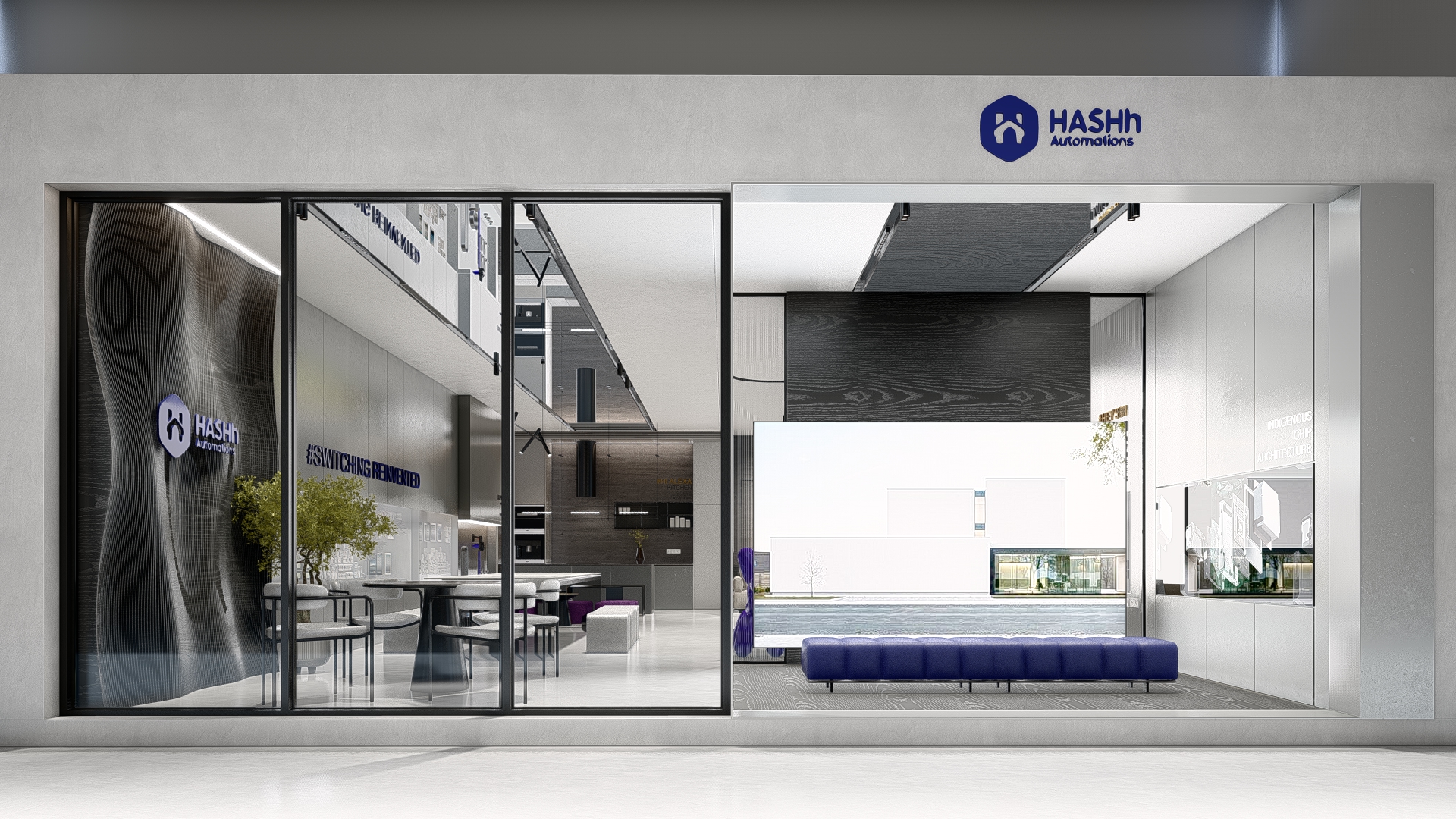 The HASH experience store is designed as a physical expression of innovation—where technology, materiality, and spatial clarity converge. Every detail of the interior reflects the brand’s ethos: intelligent design, seamless function, and future-ready living. A refined monochromatic palette forms the foundation of the space, allowing the architecture to speak through form and texture rather than ornamentation. Clean lines, uninterrupted surfaces, and integrated lighting create a calm, almost gallery-like environment—where automation products take center stage with precision and purpose. The store is structured to feel intuitive, with displays curated to mirror real-life functionality, encouraging visitors to explore, interact, and experience. Subtle accents in HASH’s brand color introduce identity without overwhelming the minimal framework—appearing in controlled moments through furniture, signage, and visual highlights. These touches establish a recognizable design language that will remain consistent across future stores nationwide. Material selection plays a critical role in defining the experience. Textured wall panels, reflective surfaces, and matte finishes work together to create depth and movement within a restrained palette. The furniture and lighting are kept sculptural yet understated, reinforcing a sense of sophistication and technological refinement. Strategically placed demonstration zones allow customers to experience automation in context—from smart switching to integrated systems—transforming abstract technology into a tangible lifestyle upgrade. As HASH expands its chain of experience stores across India, this interior design language sets a strong precedent: a space that is not just visited, but felt. A space where innovation becomes immersive. A space where switching is truly reinvented.