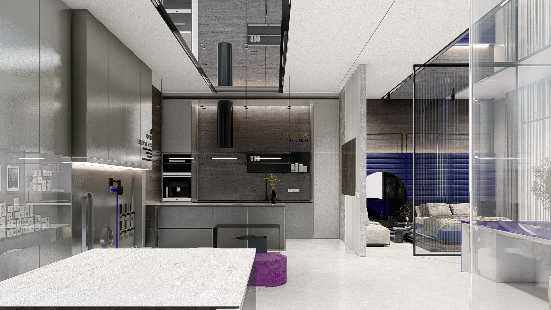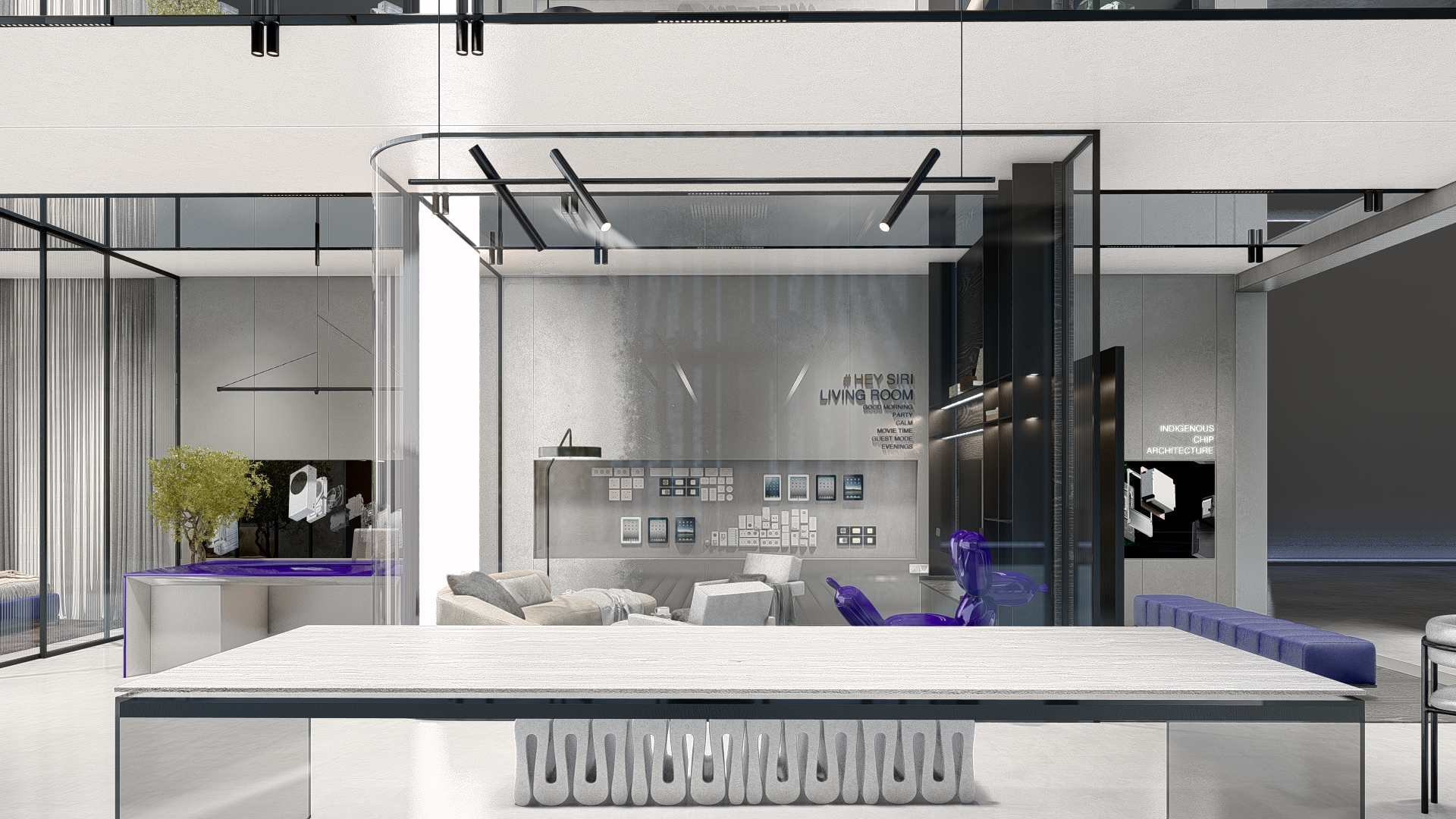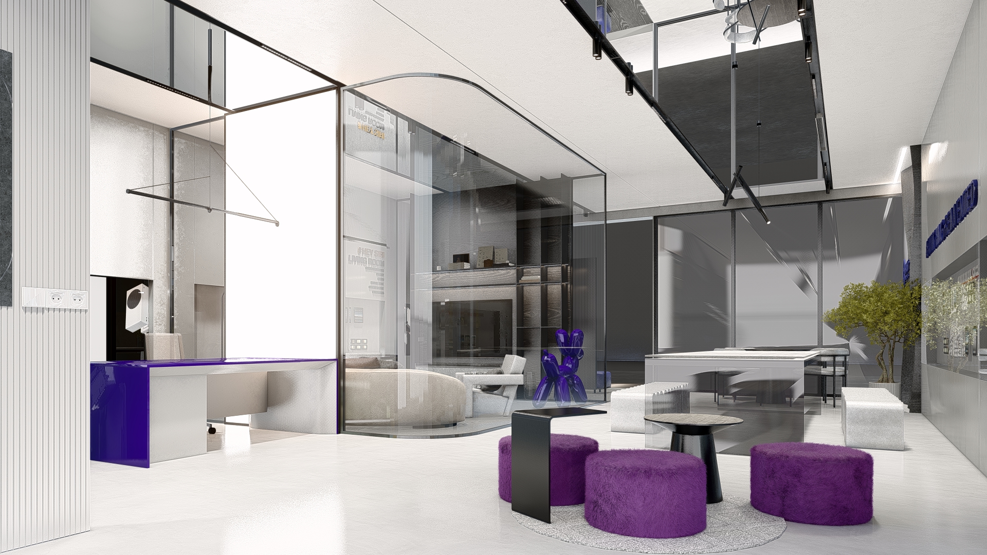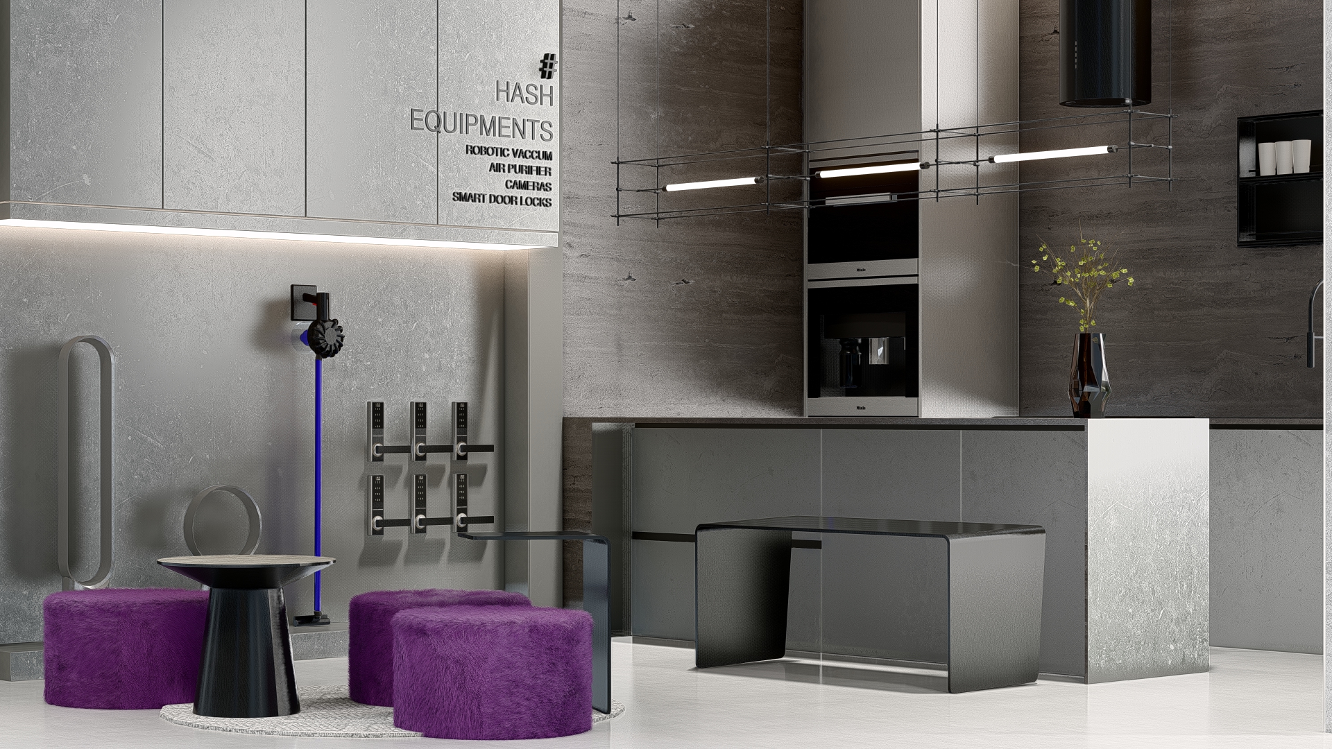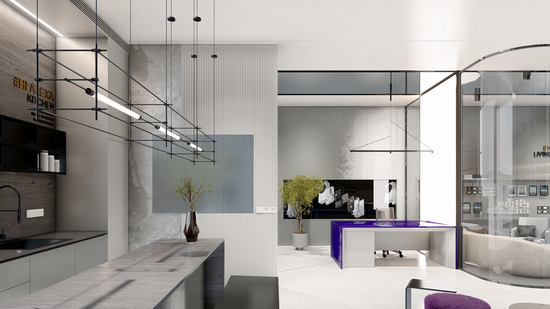 The HASH experience store is designed as a physical expression of innovation—where technology, materiality, and spatial clarity converge. Every detail of the interior reflects the brand’s ethos: intelligent design, seamless function, and future-ready living. A refined monochromatic palette forms the foundation of the space, allowing the architecture to speak through form and texture rather than ornamentation. Clean lines, uninterrupted surfaces, and integrated lighting create a calm, almost gallery-like environment—where automation products take center stage with precision and purpose. The store is structured to feel intuitive, with displays curated to mirror real-life functionality, encouraging visitors to explore, interact, and experience. Subtle accents in HASH’s brand color introduce identity without overwhelming the minimal framework—appearing in controlled moments through furniture, signage, and visual highlights. These touches establish a recognizable design language that will remain consistent across future stores nationwide. Material selection plays a critical role in defining the experience. Textured wall panels, reflective surfaces, and matte finishes work together to create depth and movement within a restrained palette. The furniture and lighting are kept sculptural yet understated, reinforcing a sense of sophistication and technological refinement. Strategically placed demonstration zones allow customers to experience automation in context—from smart switching to integrated systems—transforming abstract technology into a tangible lifestyle upgrade. As HASH expands its chain of experience stores across India, this interior design language sets a strong precedent: a space that is not just visited, but felt. A space where innovation becomes immersive. A space where switching is truly reinvented.