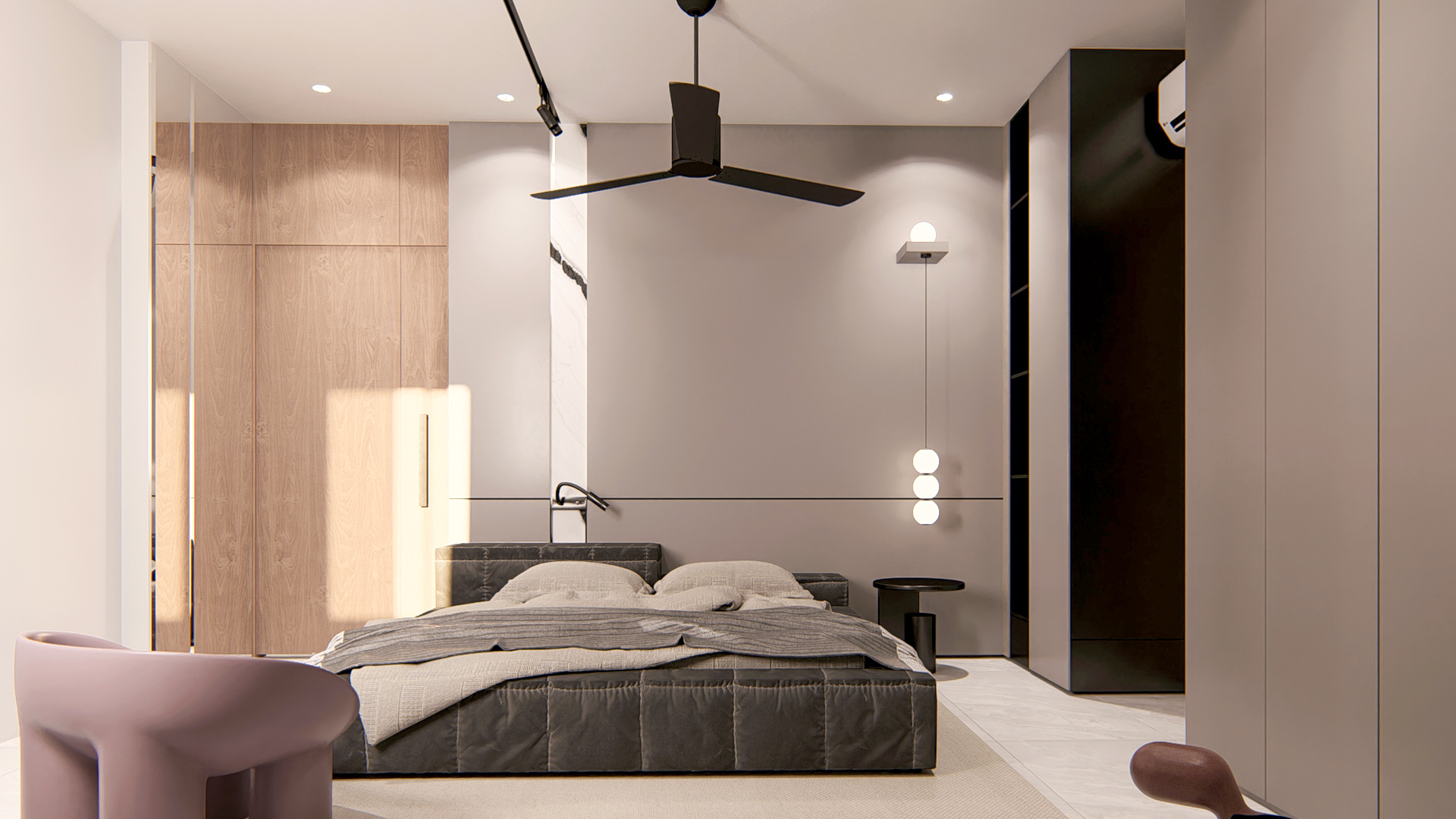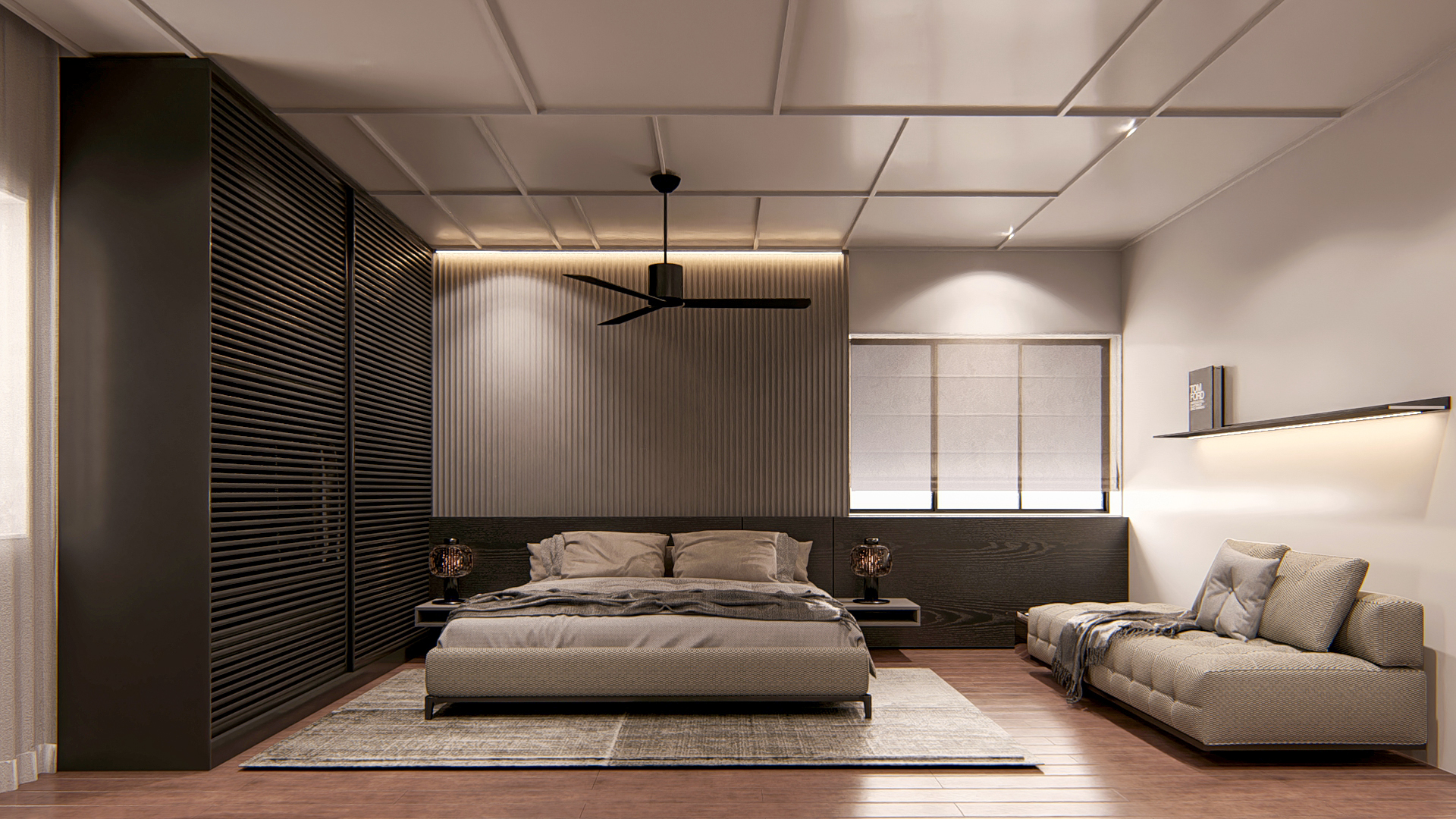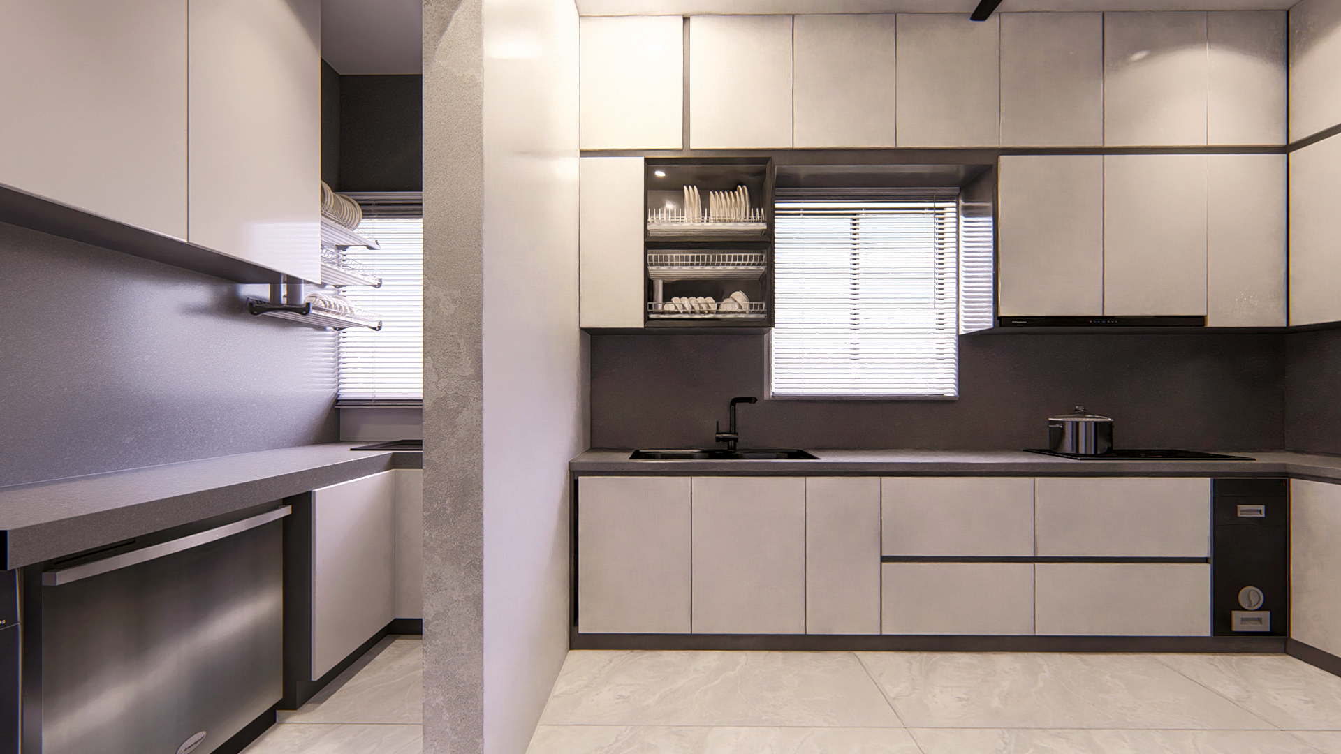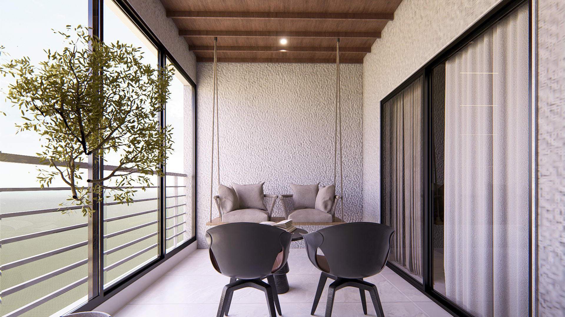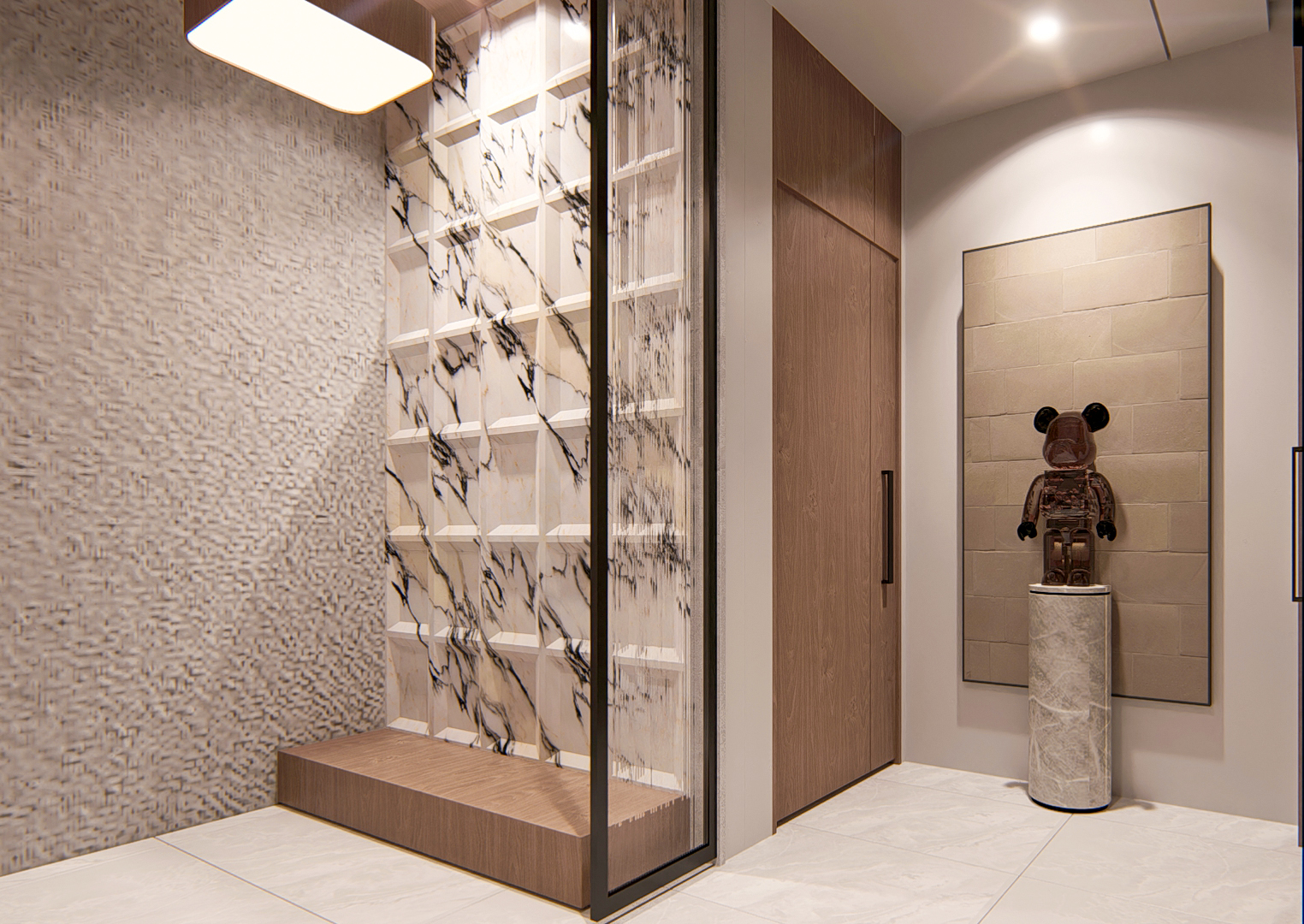 A Contemporary Haven of Luxury & Personal Expression Located on the top floor of a premium luxury apartment with panoramic views of the city, this residence is a sophisticated fusion of modern opulence and thoughtfully curated personal experiences. The material palette embraces pure luxury—a harmonious play of premium finishes, refined textures, and contemporary detailing that elevates everyday living into an immersive design experience. The spatial journey begins with a minimal and graceful foyer that opens into a vibrant, light-filled living hall. A striking Statuario marble platform forms the base of the TV unit, establishing an unmistakable statement of ultra-modern luxury. Every detail is executed with precision, including seamlessly concealed DB boards integrated into the wall paneling—maintaining aesthetic clarity without compromising functionality. The dining area continues the narrative of bold elegance with a beautifully crafted black-tinted glass crockery unit that becomes both a functional centrepiece and a sculptural visual highlight. Adjacent lies the guest bedroom, styled in a Neo-Classical language softened with delicate floral POP elements—merging vintage charm with contemporary refinement. The master bedroom unfolds as a generous sanctuary designed to breathe luxury, comfort, and convenience. Warm textures, layered lighting, and bespoke detailing transform it into a personal retreat that balances sophistication with serenity. Designed with a soft and youthful aesthetic, the daughter’s bedroom reflects tender personalisation. A gentle pink palette paired with playful wavy HDHMR elements shapes a charming space filled with personality and warmth—crafted as a reflection of her identity. The Pooja room serves as a vibrant spiritual core, reinterpreted through a modern lens. Clad in fluted marble with Statuario marble drawers, the space blends traditional sentiment with contemporary elegance, transforming devotion into a beautifully designed spatial experience. Together, the spaces form a cohesive narrative of refined living—where luxury meets meaningful design and where every corner celebrates beauty, purpose, and comfort.