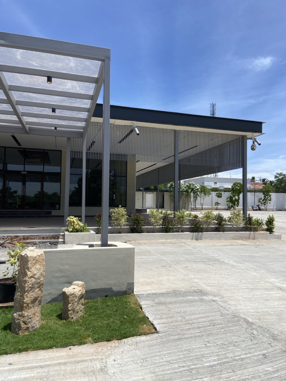 A Minimalist Cultural Venue Designed for Celebration & Elegance Located in one of the most prestigious neighbourhoods of Coimbatore, this 10,000 sq.ft cultural venue is envisioned as a refined banquet space crafted for weddings, gatherings, and intimate celebrations. Designed with a philosophy of understated luxury, the architecture embraces minimalism while ensuring every corner feels curated, elegant, and experience-driven. The exterior presents a sleek contemporary silhouette defined by clean lines and vertically orchestrated metal louvres. This rhythmic façade treatment lends a distinctive identity to the structure—slender, sculptural, and visually light—establishing an iconic presence within its urban context. The simplicity of form and material expression allows the building to stand tall with quiet confidence. Stepping inside, the interiors unfold into an expansive, refreshing volume bathed in a serene white ambience. The neutral palette becomes a timeless canvas for celebration, effortlessly adapting to diverse event aesthetics. Warm wooden accents across the ceiling soften the purity of the space, while modern chandeliers introduce a contemporary glamour—casting soft illumination and elevating the cultural spirit of the environment. Walls are articulated with delicate wooden beading, subtly referencing a neoclassical language that adds texture, depth, and a sense of crafted sophistication without overpowering the minimal narrative. Every corner and space is sculpted with intentional refinement, offering picture-perfect compositions ideal for photographing events and capturing timeless moments. Designed to provide breathable, versatile spaces rather than ornate displays, this banquet hall becomes an elevated stage for life’s most cherished occasions—where architecture quietly empowers experience, and minimalism transforms into celebration.