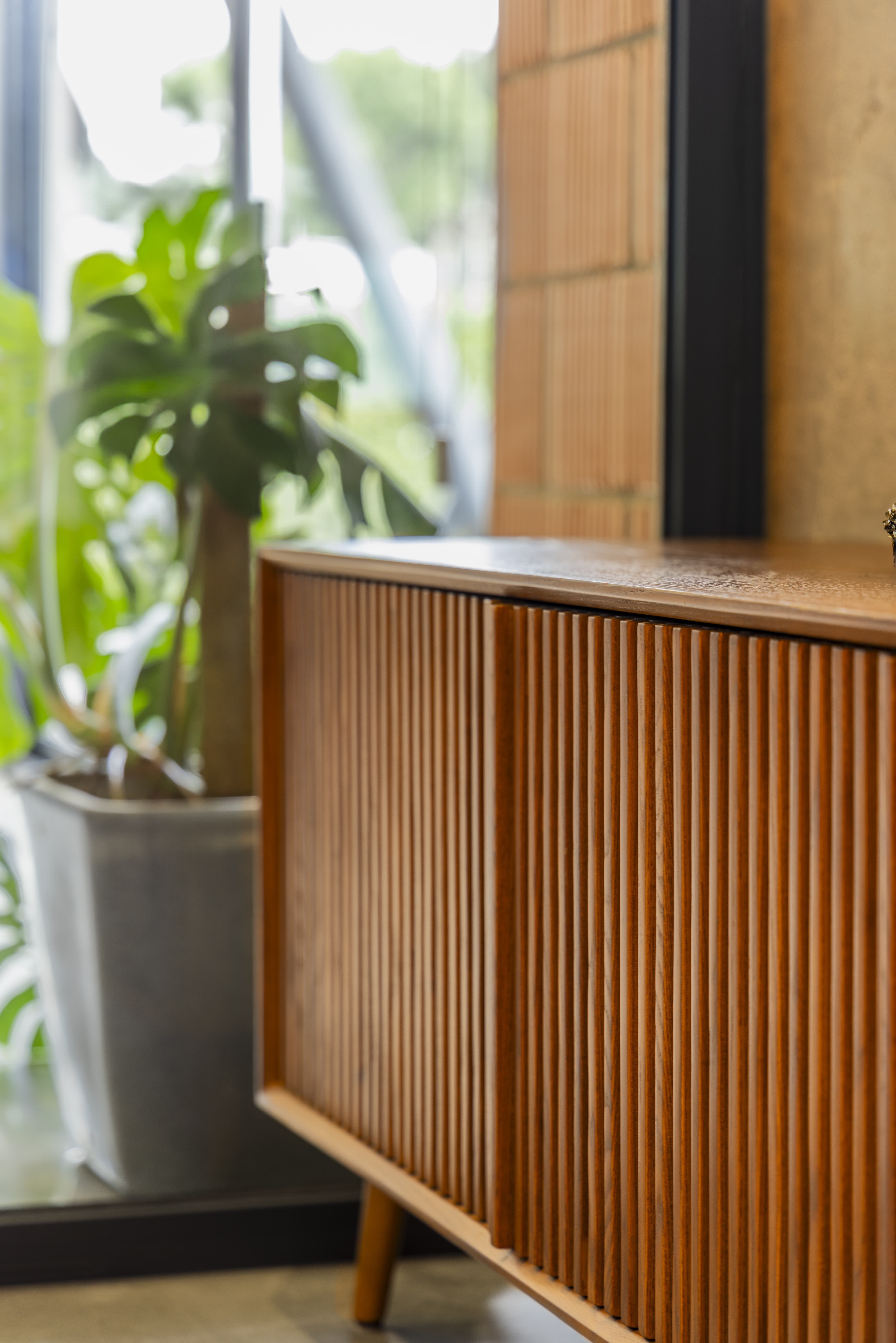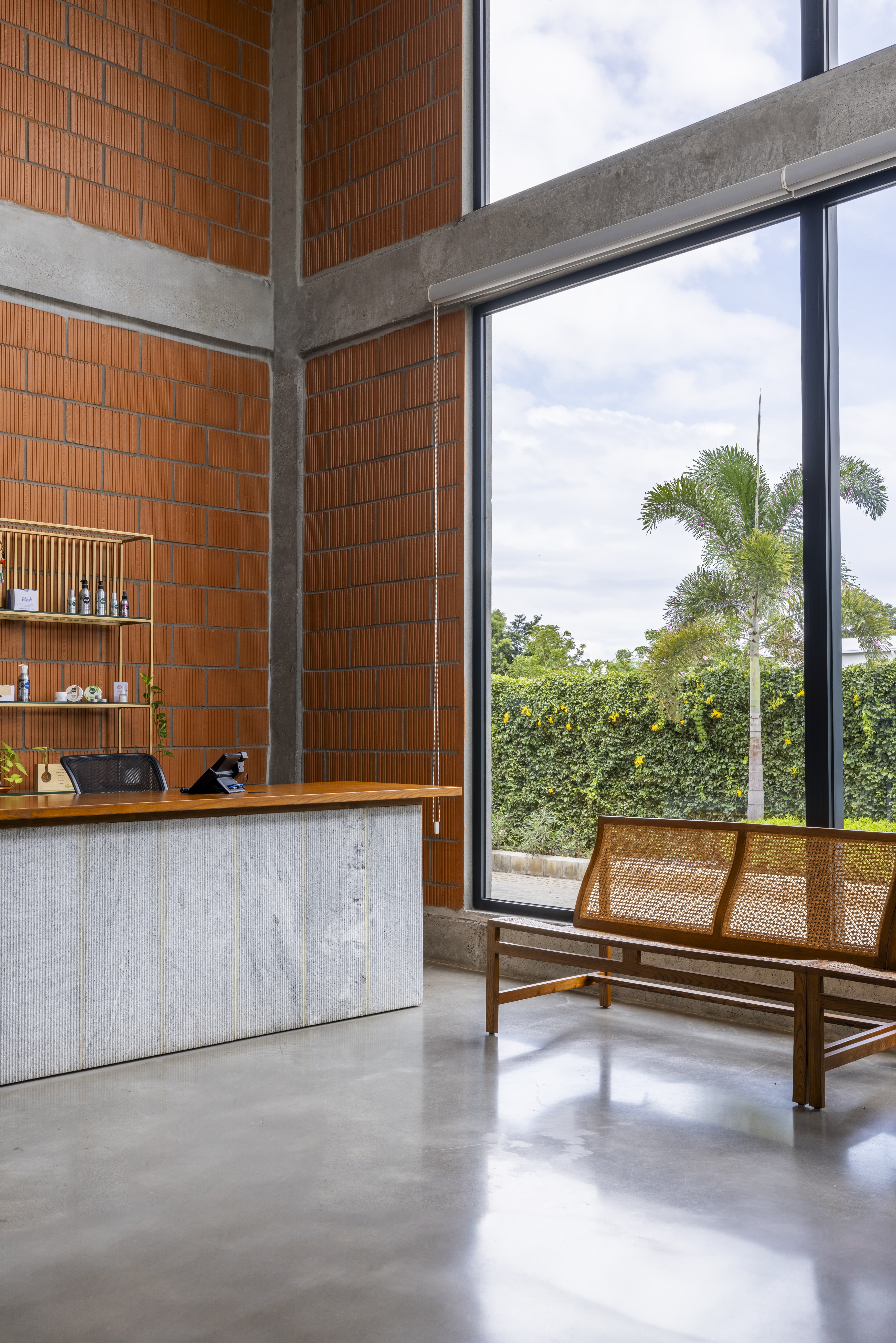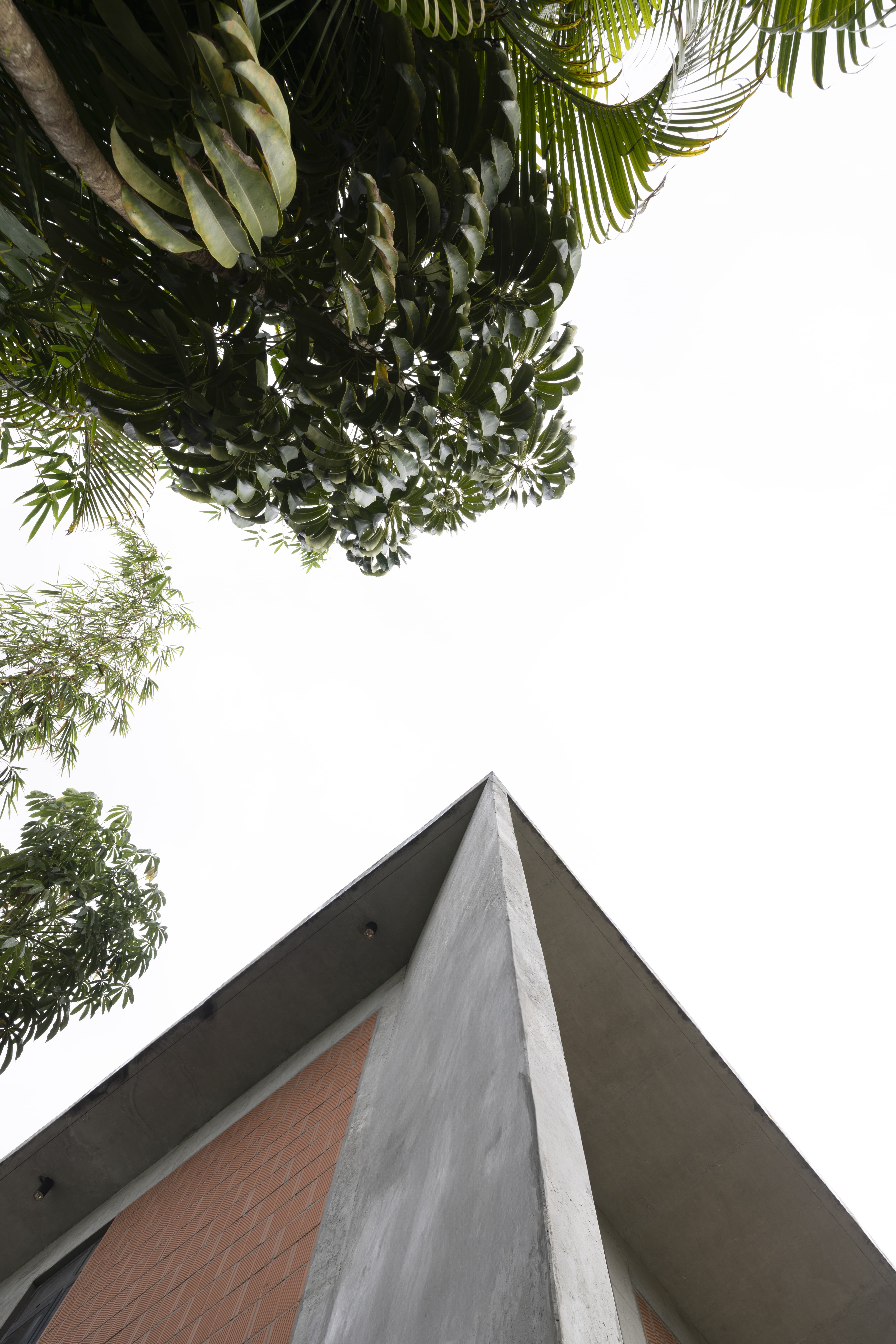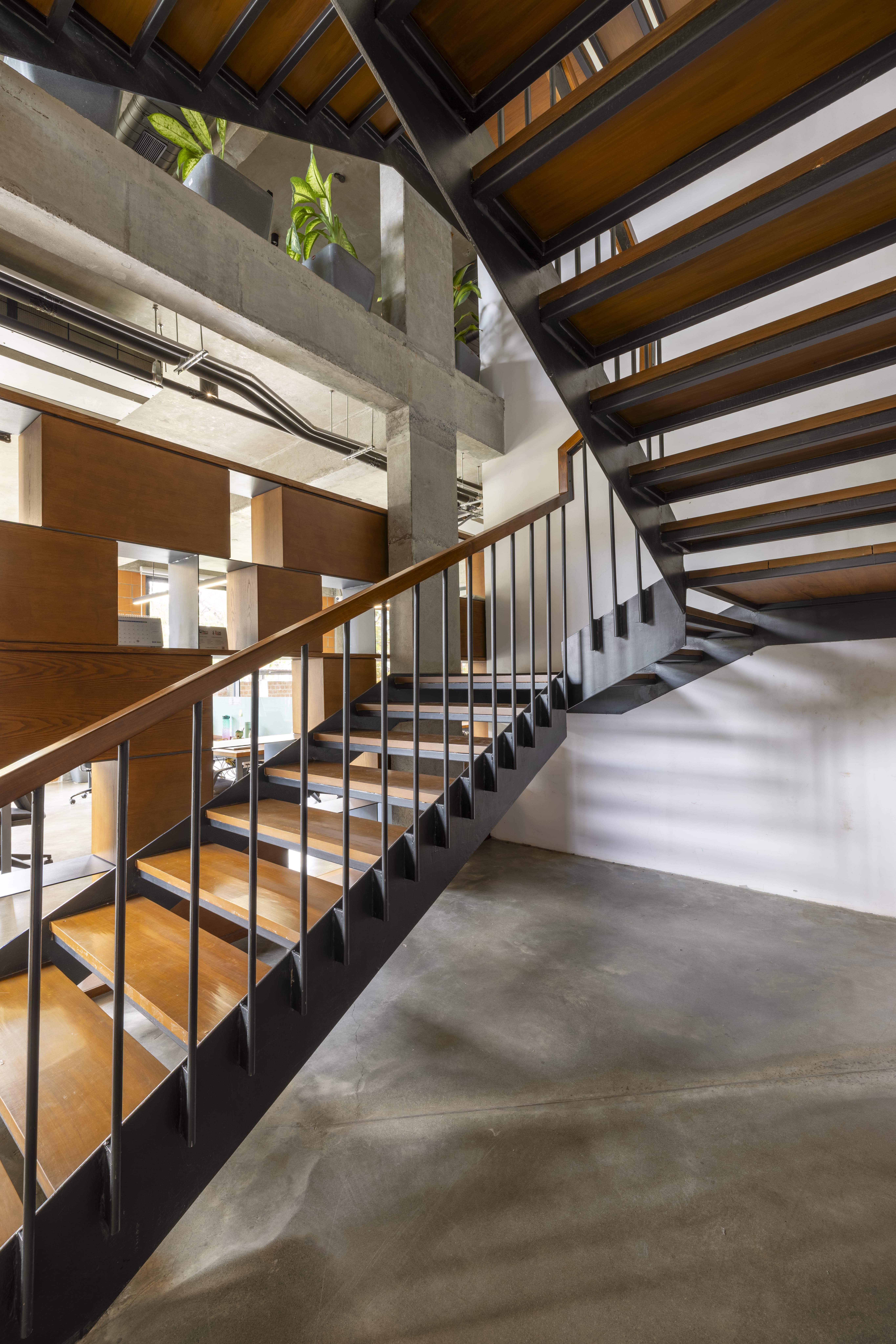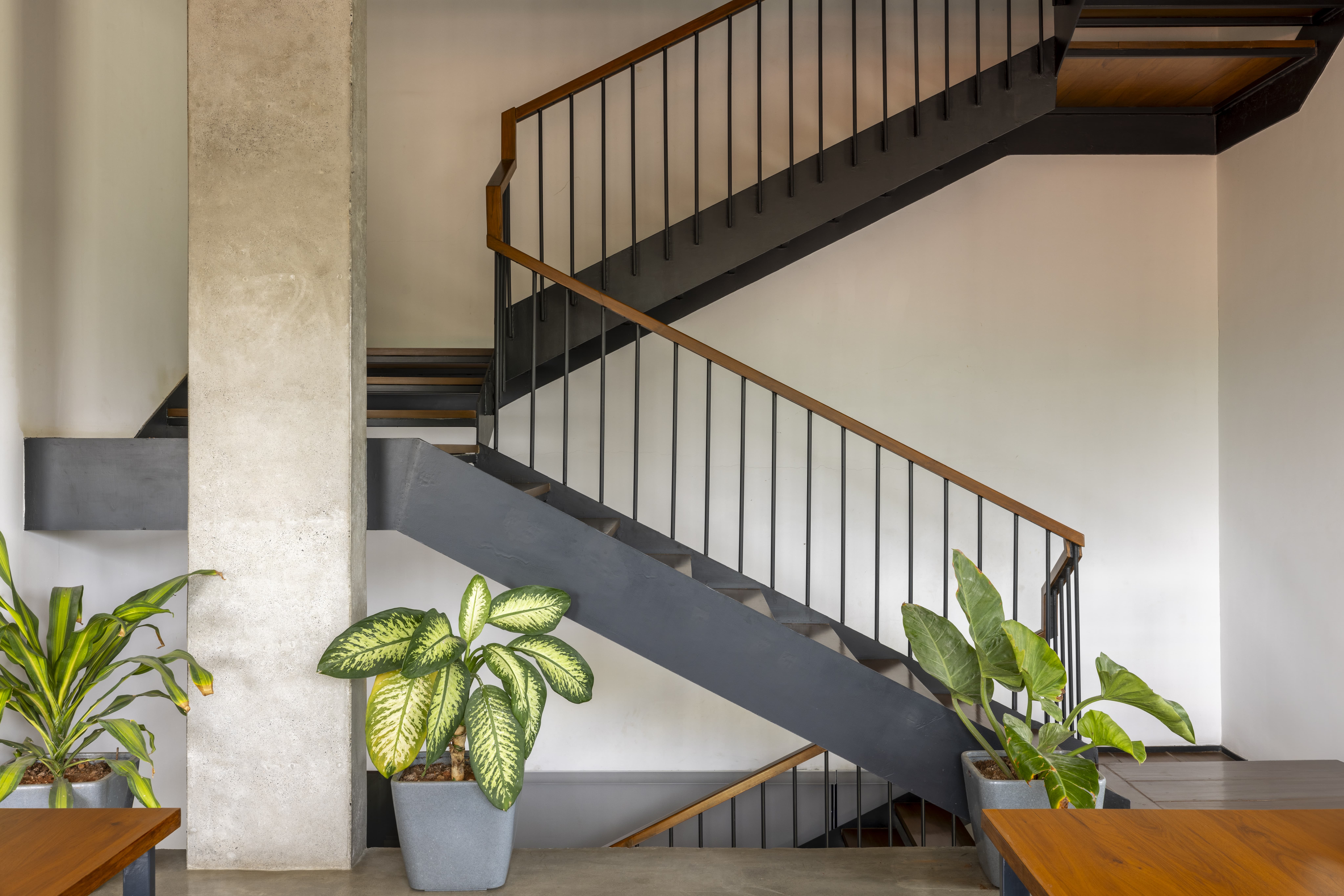 Architecture that embodies sustainability, simplicity, and sensory depth. Vilvah’s Architectural Manifesto: A Sanctuary of Sustainability and Biophilic Harmony Set in the tranquil landscape of Coimbatore, Vilvah’s Headquarters and Manufacturing Facility stands as a poetic architectural translation of the brand’s essence—rooted in sustainability, biophilia, and an unyielding reverence for nature. Spanning 30,000 square feet, the building is envisioned as a living organism, where material honesty, crafted details, and landscape weave together into a calm, nurturing ecosystem. From the moment one approaches the building, the architecture begins its storytelling. The entrance porch, defined by elegant sloped columns, forms a sculptural and welcoming frame. Adjacent to this porch lies a koi fish pond that gently traces its way along the building, introducing movement, reflection, and serenity. The soft ripple of water and presence of koi set a meditative tone, dissolving the heaviness of concrete with a sense of fluidity and life. Stepping inside, the space opens into a double-height reception, where large aluminium-framed windows invite a generous wash of natural light. The atmosphere feels airy and warm, establishing an immediate connection with the outdoors. Anchoring this entrance is the 10-foot teakwood main door, detailed with brass inlays—a celebration of handcrafted elegance, rooted in Indian materiality and timeless design. The architectural palette embraces raw authenticity. Exposed concrete walls, unplastered Porotherm bricks, and vernacular-style wooden furniture create a cohesive, grounded aesthetic that reflects Vilvah’s organic ethos. These material choices are not merely visual; they support sustainability, natural cooling, and reduced embodied energy. The spatial planning follows a simple, intuitive logic. The front section houses the office spaces, designed for openness and easy collaboration. Natural light and greenery are ever-present, softening the otherwise industrial language. At the administrative heart sit two Managing Director cabins, placed symmetrically with a serene internal courtyard between them. This courtyard acts as a contemplative core—filled with plants, filtered sunlight, and an atmosphere of stillness that breaks the monotony of work. It becomes a shared visual pause, a moment of grounding within the building’s daily rhythm. Beyond the office zone, the layout transitions into the manufacturing wing, where functionality and material honesty continue. Exposed ceilings reveal the structural and service networks, reinforcing the brand’s values of transparency and unpretentious design. The manufacturing spaces are organized to support seamless flow from formulation to packaging, without sacrificing comfort or daylight. Throughout the facility, biophilic design remains a central philosophy. Indoor greenery, water elements, tactile materials, and diffused natural light together shape an environment that promotes well-being, mindfulness, and a deeper sense of belonging. Every design decision nods to sustainability—Porotherm bricks enhance thermal comfort; natural lighting reduces energy load; thoughtful ventilation improves airflow; and the site planning supports rainwater management and future renewable integrations. In essence, Vilvah’s headquarters is more than a built structure. It is an architectural manifesto—a harmonious blend of raw textures, natural elements, and eco-conscious design. It represents an evolving future where buildings nurture, inspire, and remain deeply rooted in the earth they rise from. Raw yet refined, grounded yet uplifting, this architectural sanctuary embodies the spirit of Vilvah: honest, organic, and beautifully alive.